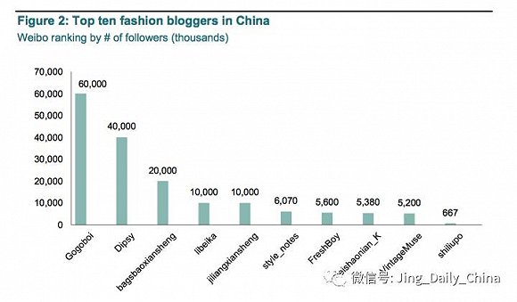 巴黎银行奢侈品部根据微博粉丝数的中国10大时尚博主排名
