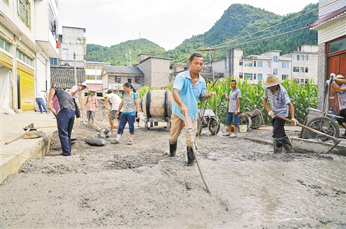 解吉权说,驻村工作组提出了“一水、二路、三居、四业、五配套”的扶贫路径。短短1年时间,修建了幸福苑(含广场)、后坝广场、深溪广场,并安装了路灯,修建人畜饮水工程4处,安装水管130户共18公里。村里还修建了大屋基连心桥,硬化贫困户院坝65户,共1950平方米,改造房屋72栋。