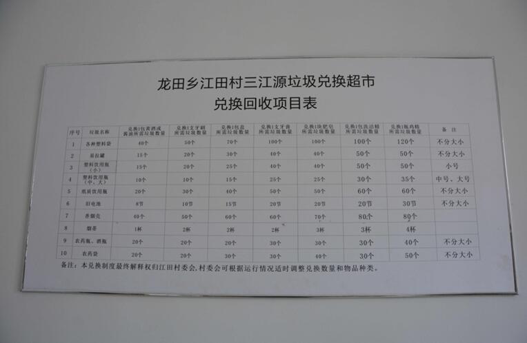 为了增强村民保护环境、垃圾分类处理的意识,保护村庄环境,提升村容村貌,江田村从去年11月开始运营垃圾兑换超市。