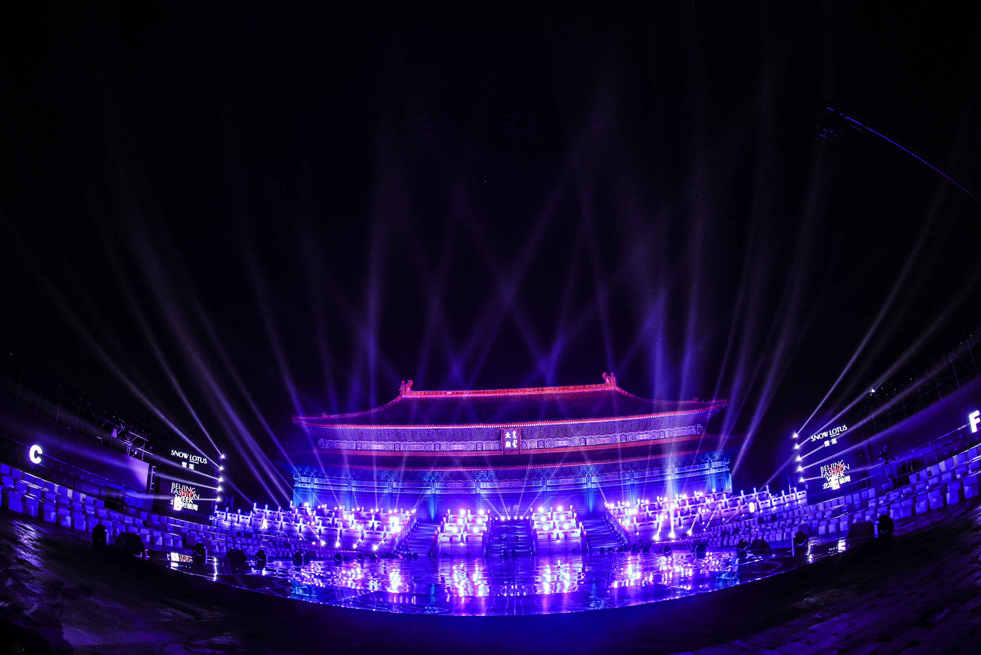 在炫彩的灯光和宏伟的古建交融辉映之下,北京电视台著名主持人李杨薇身着两套分别名为“龙凤祥瑞”和“云之雪莲”的雪莲高级定制礼服,与凤凰卫视著名主持人王峰一同璀璨亮相,主持了当晚的活动。