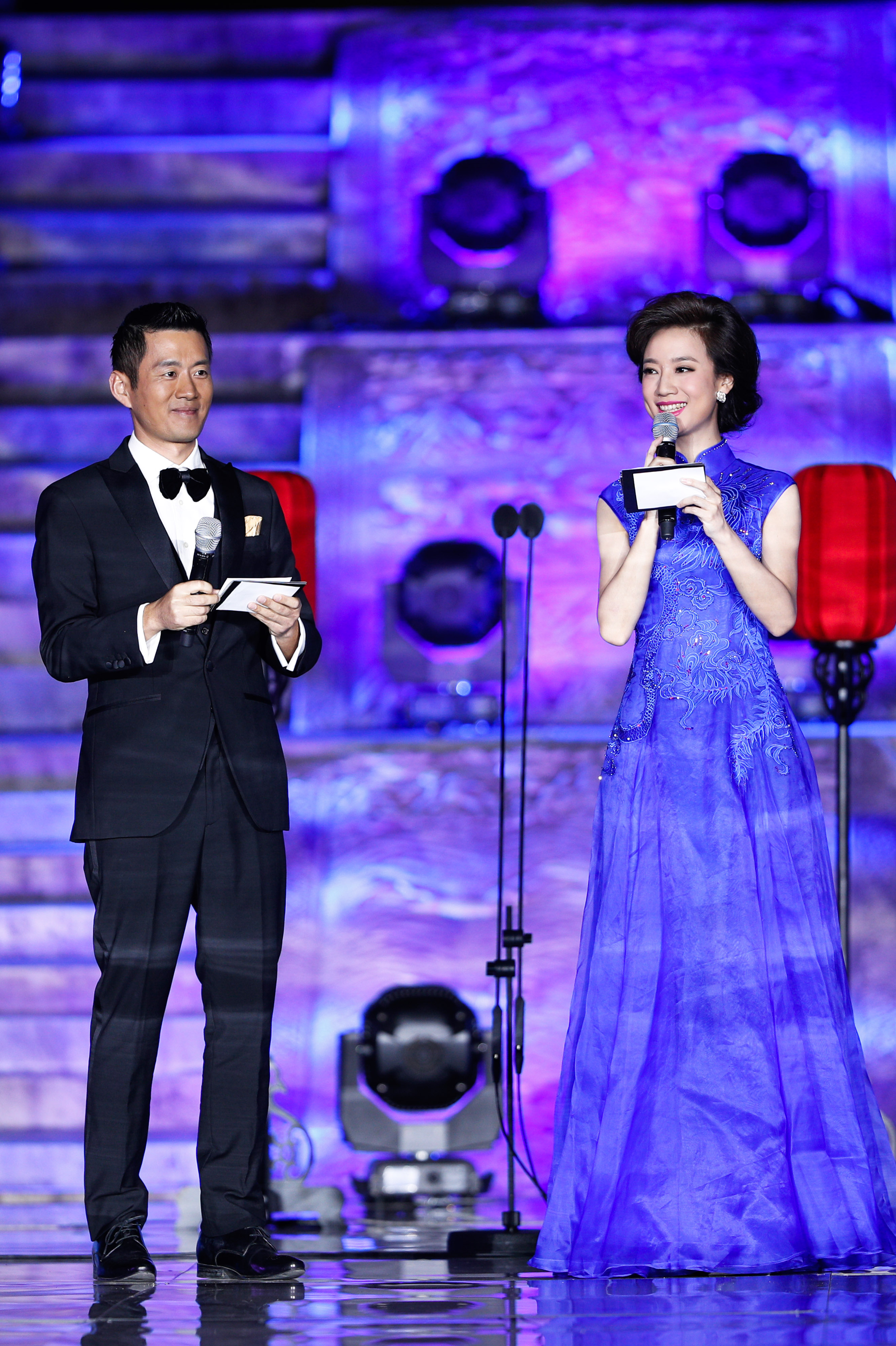 北京电视台著名主持人李杨薇(右)身着雪莲高级定制礼服与凤凰卫视著名主持人王峰为开幕式担纲主持。