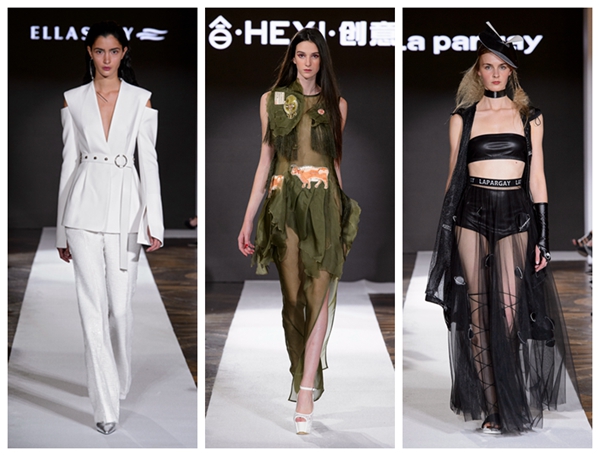 首先开场的ELLASSAY(歌力思),带来以未来视觉为主导,灵感来源于当下炙手可热的科技时装话题,提倡以时尚科技的“适度”理论,让女性更加自然与舒适的体验科技感时装。以黑白前卫时尚为主打的La pargay(纳帕佳),则以东方神秘的太极八卦图为设计灵感, 探索宇宙神秘艺术与时尚的融合。此外,由中国知名设计师谢海平领衔的“合一创意”以“丝路·重生”为主题概念,用东方符号向“新古典主义“致意,以分割、解构、层叠、燃烧等考究繁复工艺,将古老的丝绸之路“涅槃重生”。首次亮相的明月荷也通过时尚设计,将中国文化用更国际化的语言传达给世界。