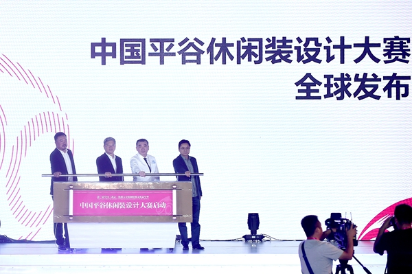 中国纺织工业联合会副会长夏令敏、中纺永景投资有限公司董事长郭杙、北京中纺联创投资开发有限公司(尚坤塬)总经理矫井权和新光资产投资管理有限公司董事总经理方彦钦共同发布仪式。在大家期待的目光下,四位领导缓缓推下启动杆,预示着中国平谷休闲装设计大赛全球开启。