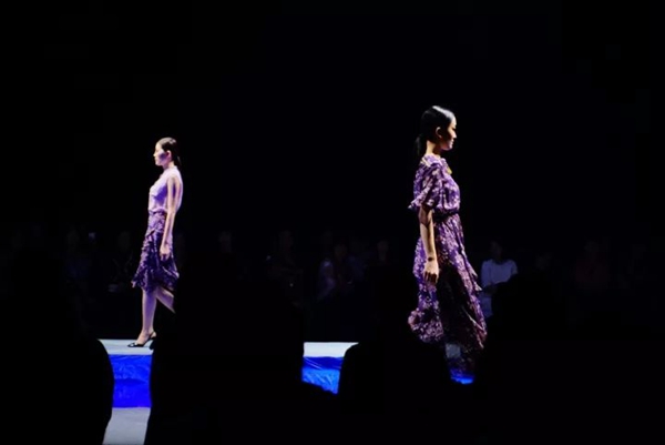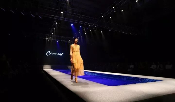 当卡蔓的优雅遇上2018春夏流行色,就像蝴蝶破茧,为优雅而生。飘逸的裙摆,灵动的袖边,风采怡人。配合灯光和水中镜影,模特在台上的演绎,走过的每一处都成为一道风景。