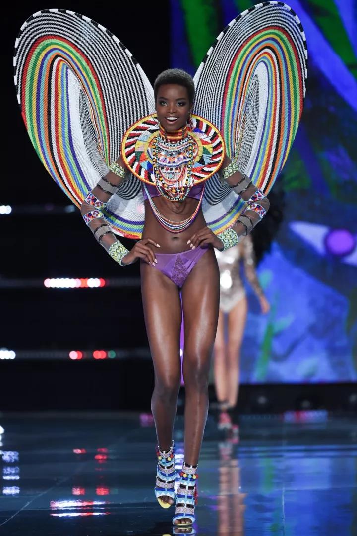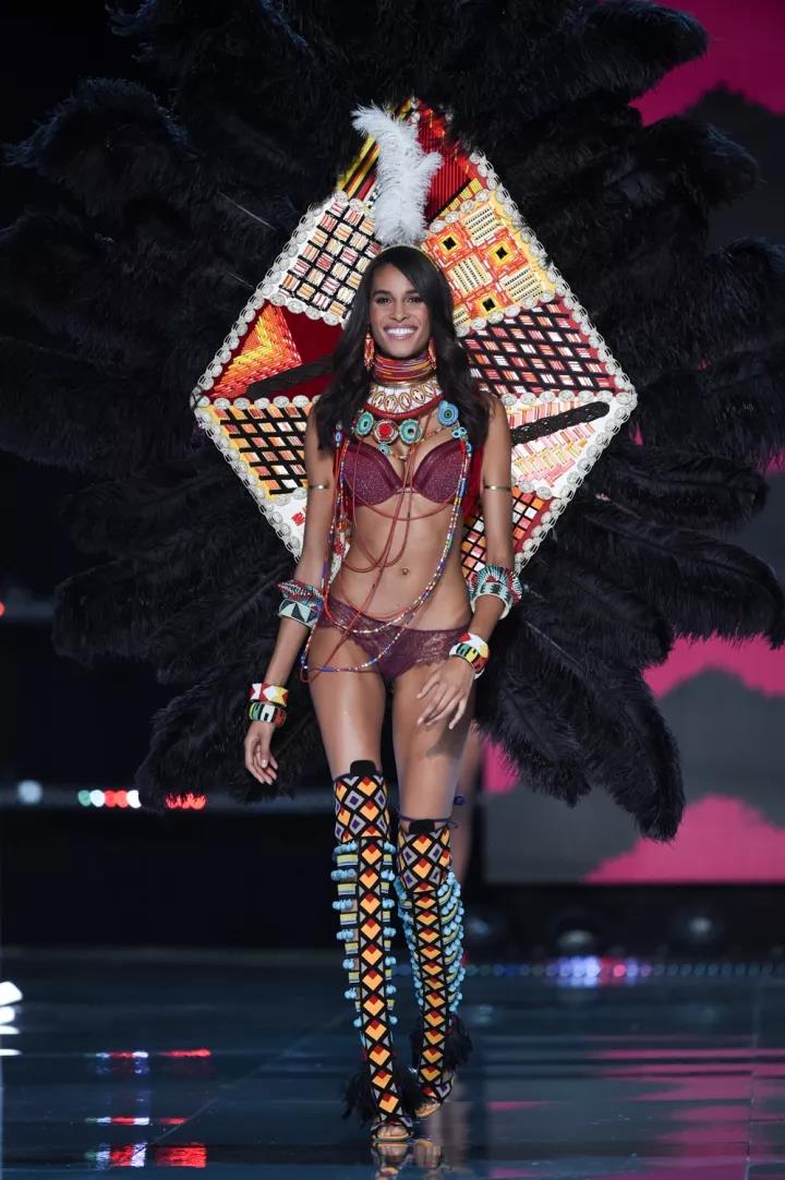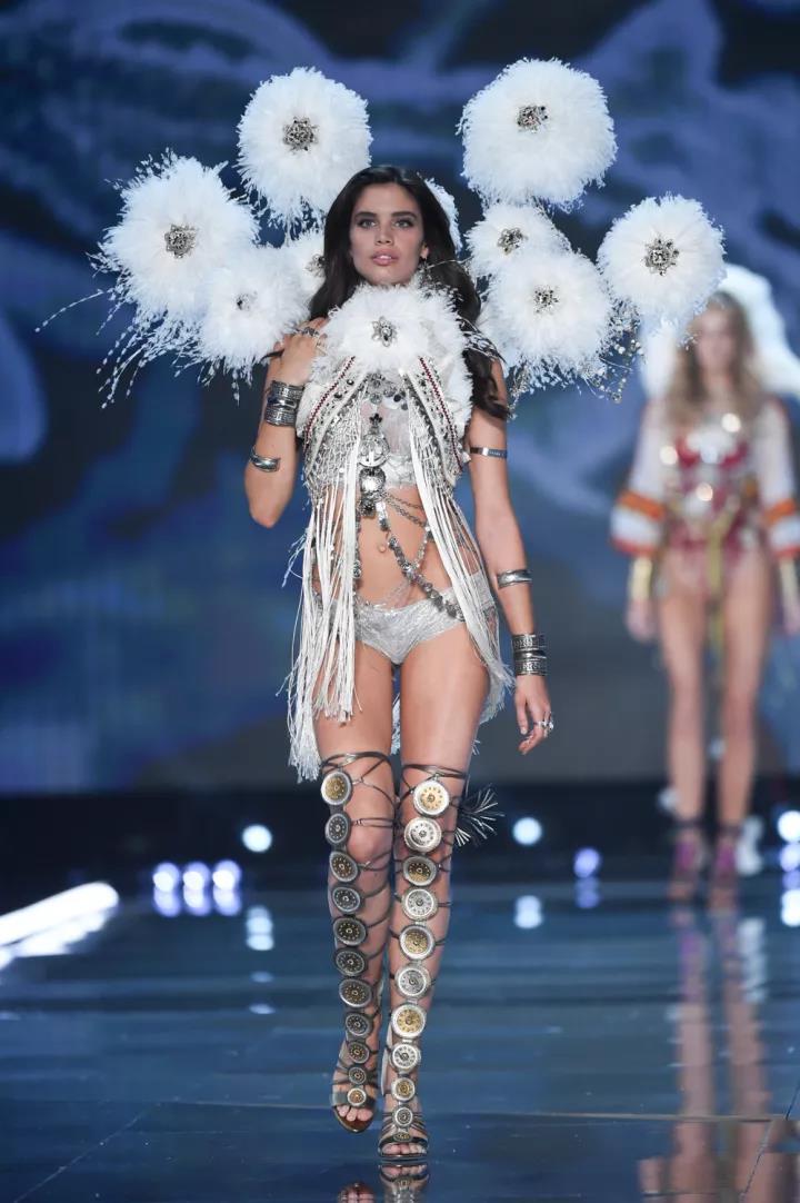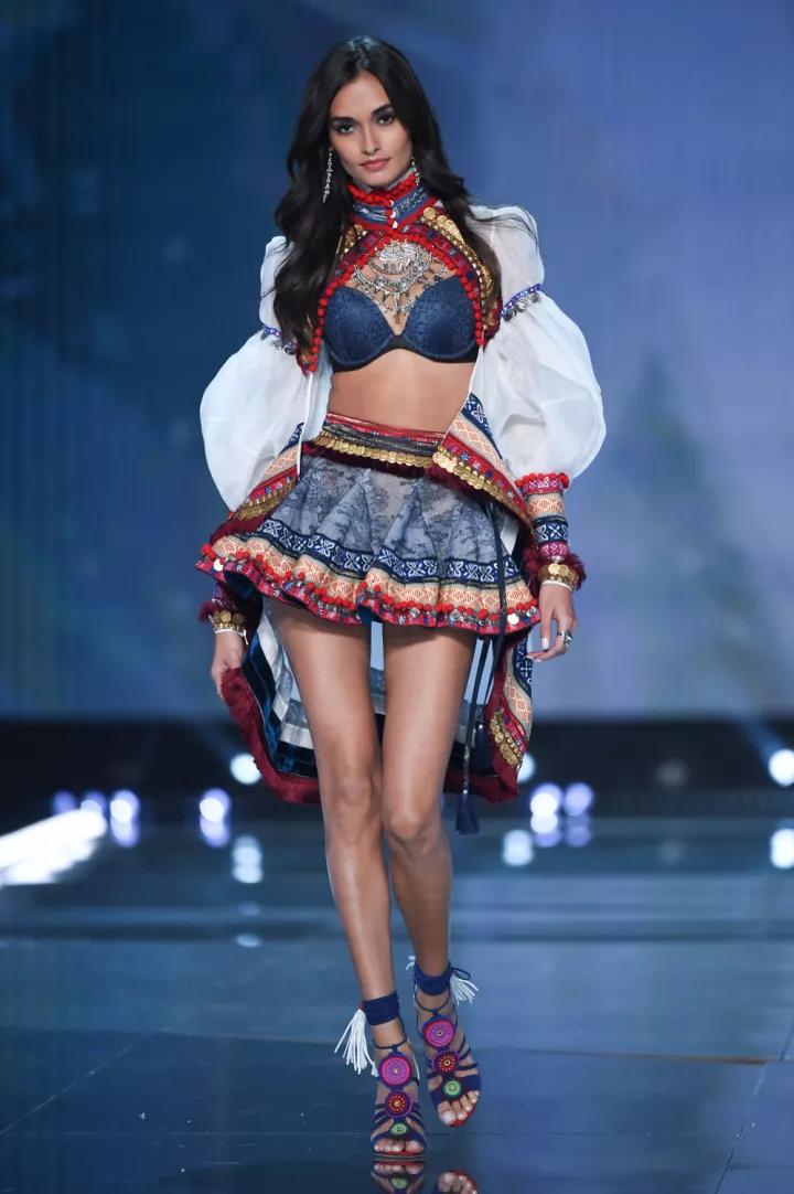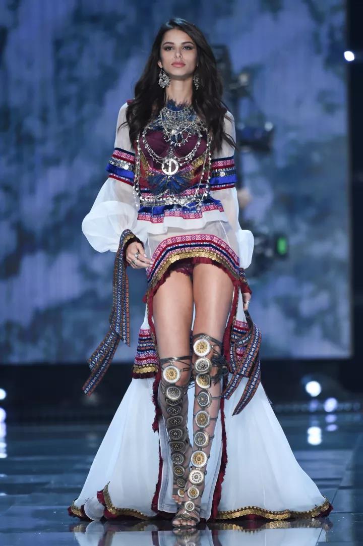 这一次的A Winter's Tale(冬境传奇)主题,在一片雪白中加入了许多民族元素——从流苏和超长吊饰,再到毛茸茸的翅膀和绑带罗马鞋,衬托出了万种异域风情。