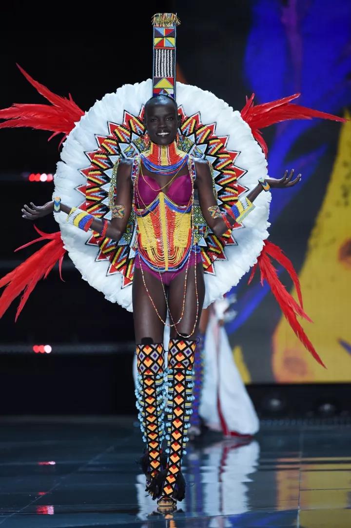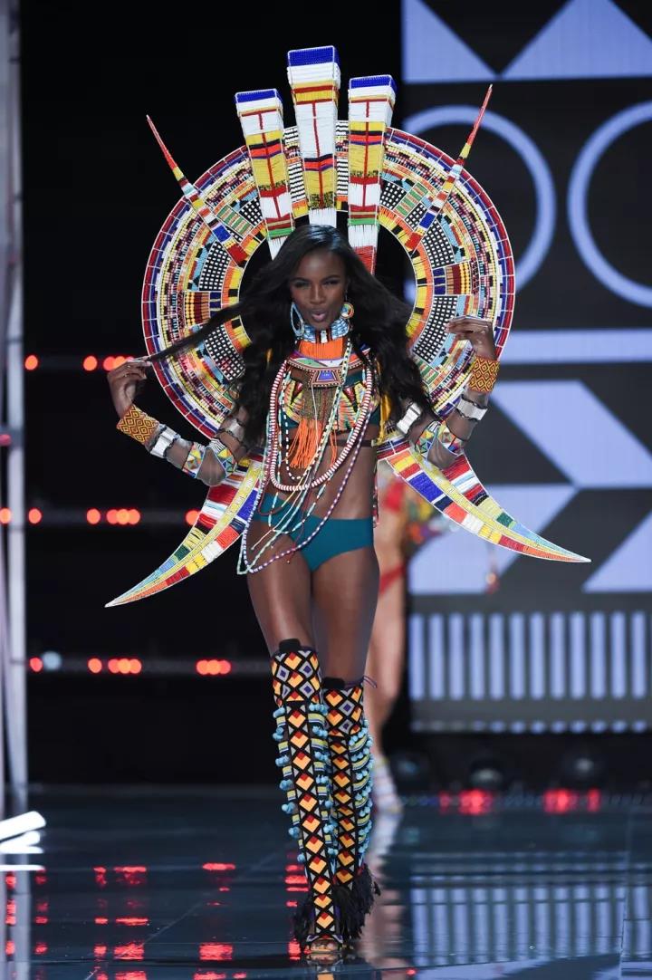 Nomadic Adventure(游牧之旅)的主题融合了美洲、非洲等多元的民族文化,层层叠叠的项链和缤纷的羽毛翅膀体现了原始自由的气息。Elsa Hosk演绎的Swarovski秀服也在这一环节出现,秀服由超过275000颗水晶、200码绸带、密镶水晶、串珠首饰和镶有水晶的翅膀肩带组成,价值100万美元,翅膀重达14磅(约12.7斤)。