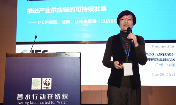 国际金融公司(IFC)高级项目专员陈蓉分享了以纺织行业为例,以“IFC的实践、成果、及未来展望”为主题分享了IFC如何推进产业供应链的可持续发展。