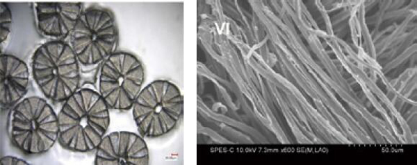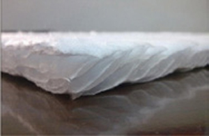 对于短纤维经过梳理成网再水刺固网的非织造材料,虽然在柔软贴肤、吸湿透气等服用性能上占有很大的优势,但由于阻隔性能较差,只能做一般的医用材料,防护性能不是很好。英国利兹大学早在2009年就开发出了一类功能化水刺非织造材料,这种材料在水刺的过程中利用特殊的装置使水刺非织造材料形成空穴结构,在空穴结构中可以添加缓释消毒剂胶囊。