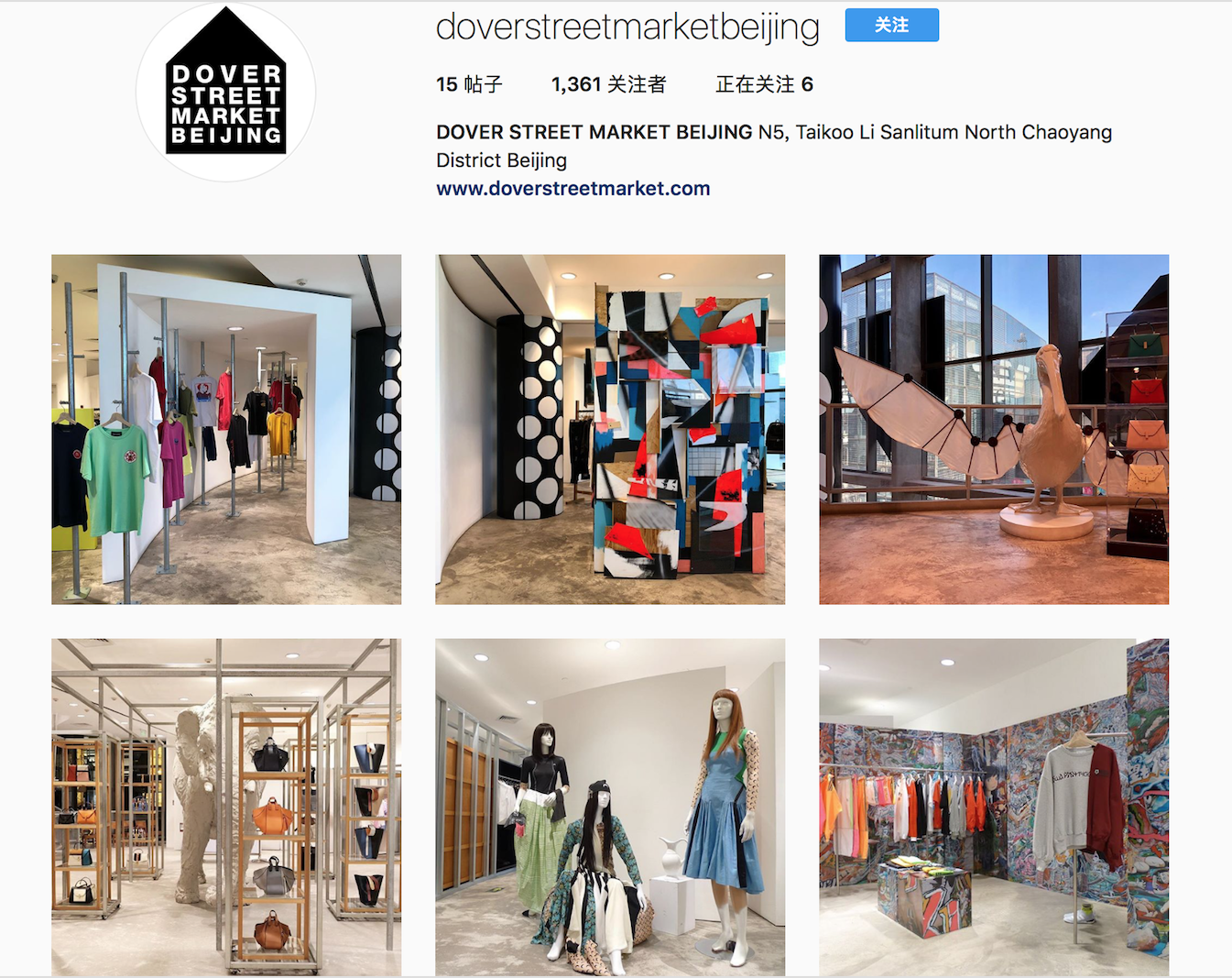 2月1日,Dover Street Market 专为北京门店开设了一个 Instagram 账号,并于2月3日新店开张后上传多张门店照片。继承品牌一贯不按套路出牌的零售方式,新北京门店内部设有多个颜色丰富的装置,设计风格也别具特色,内部设置了充满活力的涂鸦墙、黑色丘比雕塑、灰色大象等不同的装饰,还专门开辟了一片展览空间。此前曾有消息称,首家 Dover Street Market 中国门店将落户成都,但最终还是选择了北京。