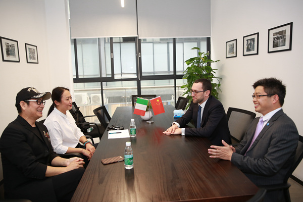 刘洋(左一)与意大利卡罗世纪服装学院领导在交流培养中国服装设计人才的构想