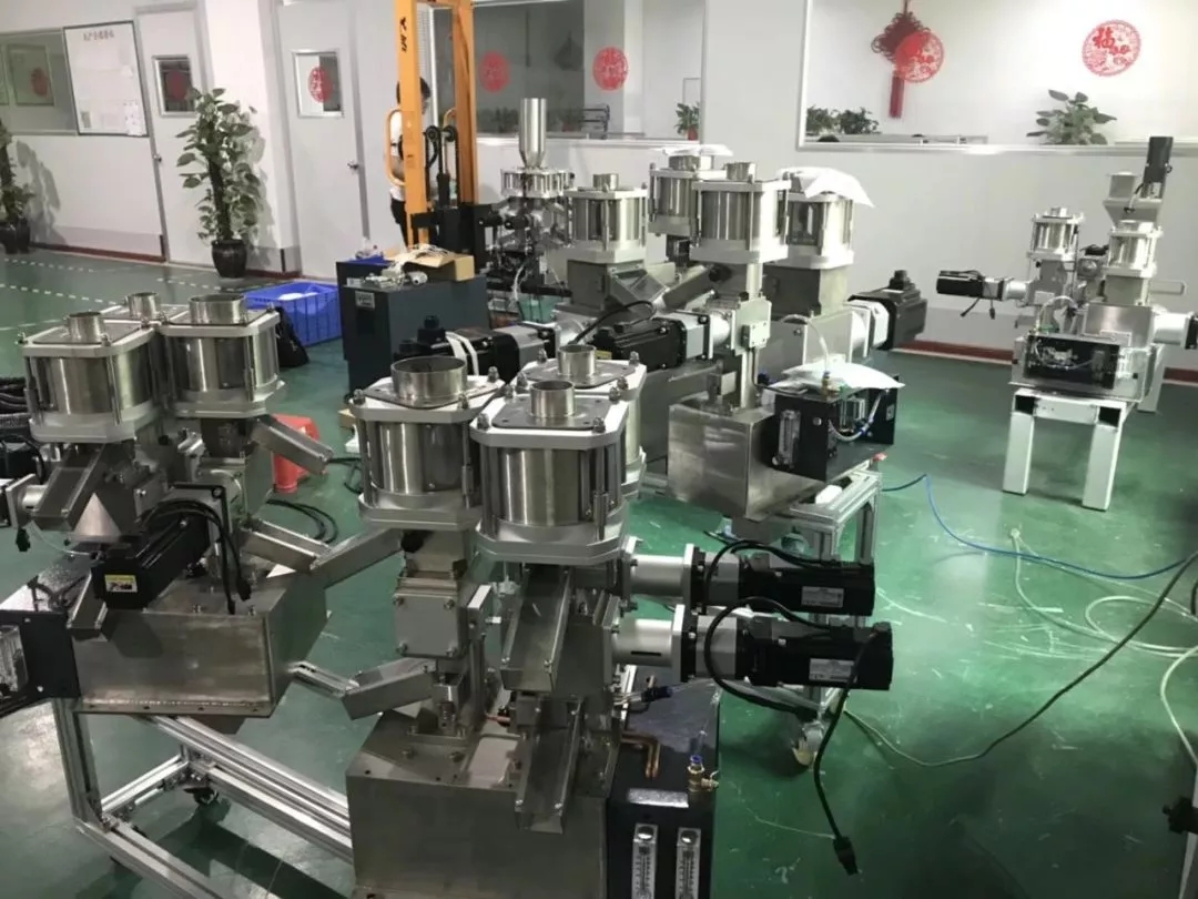 在此背景下,这几年,越来越多的纤维企业开始选择更智能化、稳定性更好、计量精度更高的高精度配料机。而在这一领域,厦门帮众科技有限公司研发的多组分在线添加设备成为"明星"产品。其工作原理是:用高精密伺服电机和减速机驱动发明专利的高精度机械式计量器,以及最优化的动态堆积密度的算法程序来实现高精度的塑料颗粒重量计量;用超高电子脉冲(计量器360度一圈用80万个细分量来控制)和错排槽计量器来保证计量量的细分化与连续性;用吹气清扫克服静电粘附来保证有效计量,以此保证高精度计量;用主料、色母按比例同时计量和静态混料座和特殊设计的缓冲料斗来保证混合均匀的材料,以活塞流的方式进到挤出螺杆,从而实现高稳定性、高均匀性、高计量精度的统一。