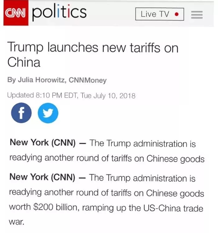 7月10日,特朗普政府公布拟对约2000亿美元中国产品加征10%的关税清单,商品类目包括海产食品、蔬果、纱线、羊毛、雨衣夹克外套等。根据美国贸易代表办公室发布的声明,加征关税可能会在8月30日公众咨询结束后生效。据初步了解,有千项纺织产品被列入清单。中国纺织工业联合会对此表示,这是美欧取消纺织品服装配额以来,我国纺织行业对外贸易所遇到的最大挑战。