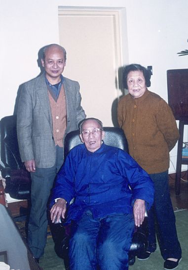 1990年冬天,本文作者(左)在钱之光部长(中)家做客
