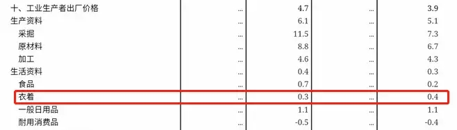 6月,衣着类产品出厂价格同比增长0.3%,1~6月同比增长0.4%。