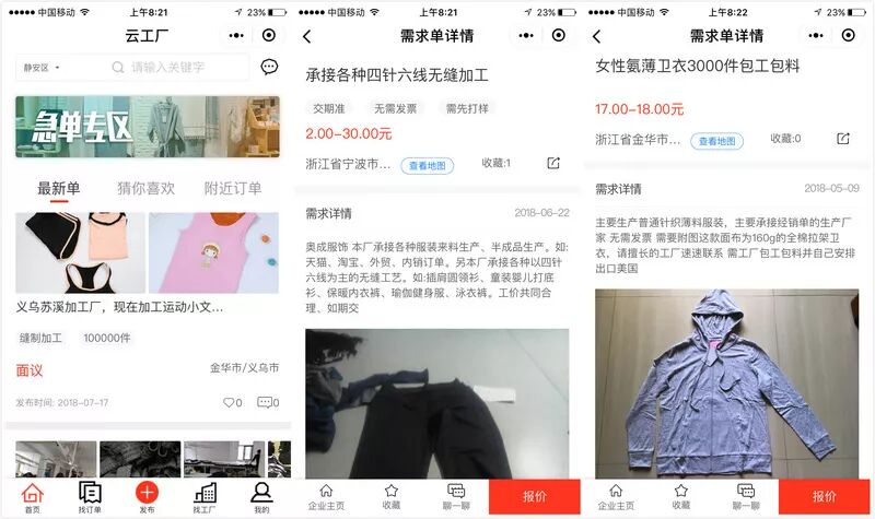 智纺网做的第一件事是产能资源整合。创始人兼CEO叶德圣告诉36氪,对于贸易商、品牌商、工厂等订单需求方来说,工厂数量多且分散,尤其有特殊订制需求时,要找到工艺、能力、排期都符合条件的工厂并不容易;而有的加工厂订单渠道有限、产能闲置,有的加工厂又存在产能不足、无法按期交单的情况。