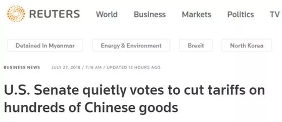 的确,自7月上旬美国已公布拟对千项纺织产品加征10%的关税清单后,有关中美贸易的消息一直不断。先有消息称特朗普称将对华5000亿美元进口商品加征关税,然而近日,外媒报道,美国通过法案降低1600多种进口商品关税,其中一半来自中国。