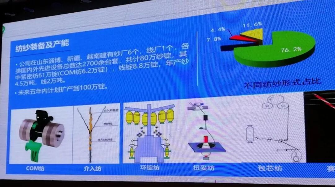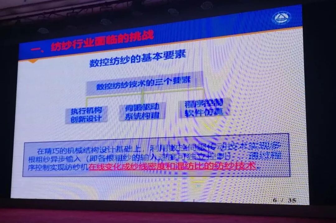 江南大学教授、博导薛元介绍了数控纺纱装备及数字化纱线面料产业化关键技术。数控纺纱在精巧的机械结构设计基础上,利用数控伺服传动技术实现多根粗纱异步输入,通过程序控制实现纺纱机在线变化成纱线密度和混纺比。利用三通道数控混色纺纱技术能生产出多种新型花色纱品种。薛元提出,数控纺纱是实现柔性智能纺纱的必由之路。