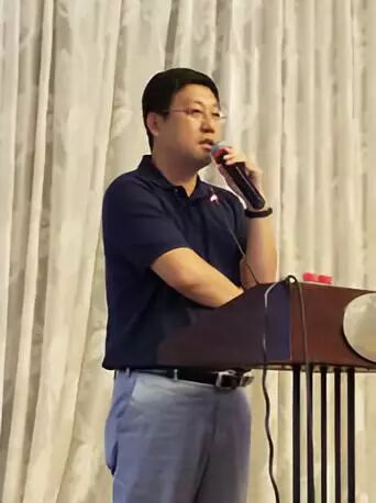 中国国际贸易促进委员会纺织行业分会副会长/北京泰格斯特国际展览展示有限公司总经理梁鹏程作了承办方展会情况介绍报告,介绍了展会基本概况、工艺分配区、布撤展时间、观众登录厅介绍、展馆周边交通、免费提供巴士班车服务以及同期展会对纺机展的影响等。