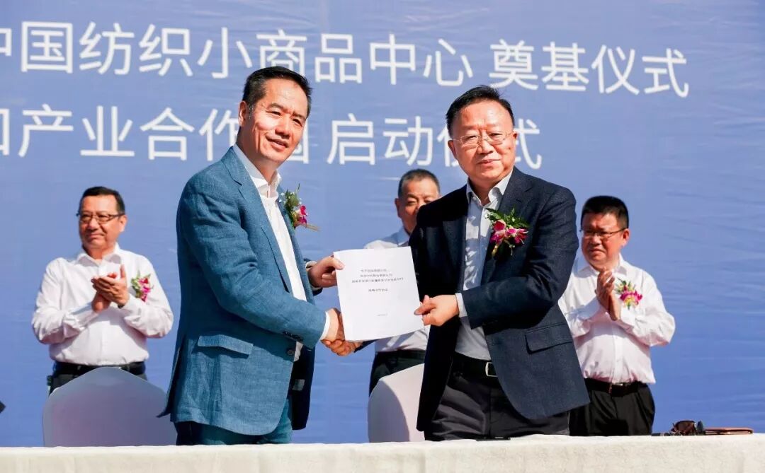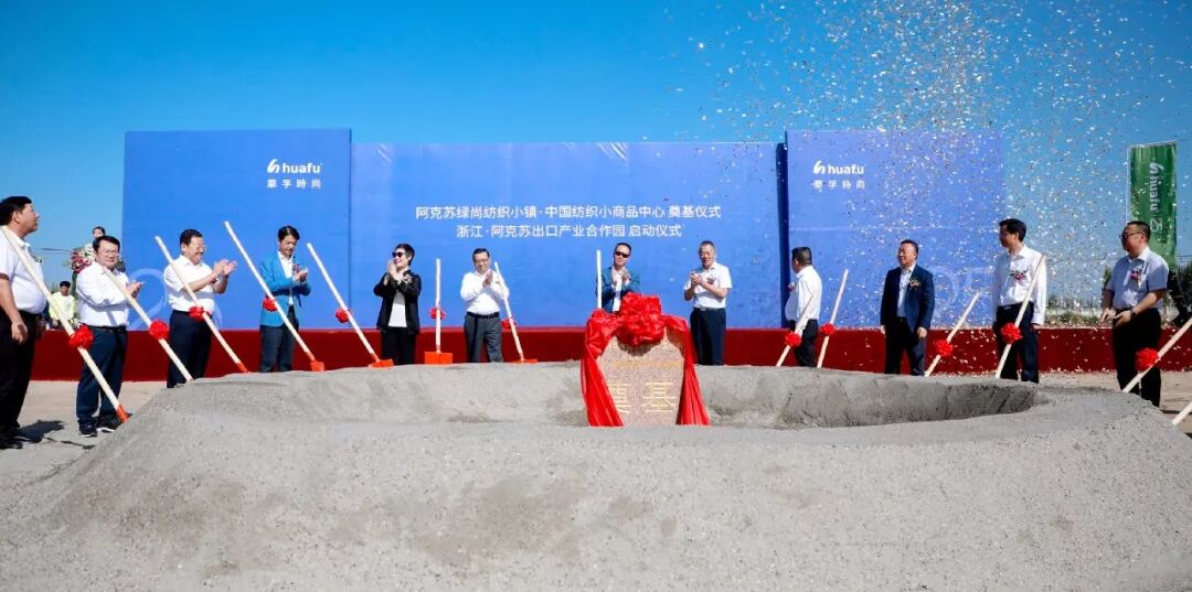 随后,阿克苏绿尚纺织小镇与中国纺织小商品中心奠基仪式、浙江·阿克苏出口产业合作园启动仪式举行。