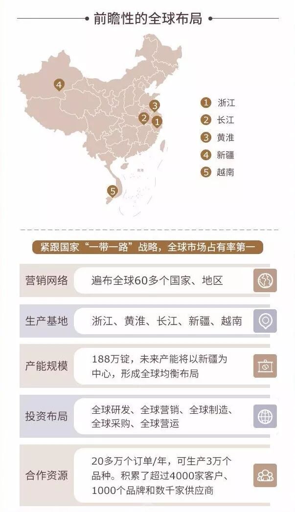 从这张图可以看出,华孚时尚的产能规模为188万锭,分布浙江、长江、黄淮、新疆和越南五大生产板块,企业未来将加大新疆投资,迎接中国消费升级。对此,孙伟挺表示,如纺织服装这样的大规模产业一定要充分利用两个市场、两种资源。华孚正在紧紧抓住“一带一路”经济全球化与国内消费升级二个战略机遇,精准发力。