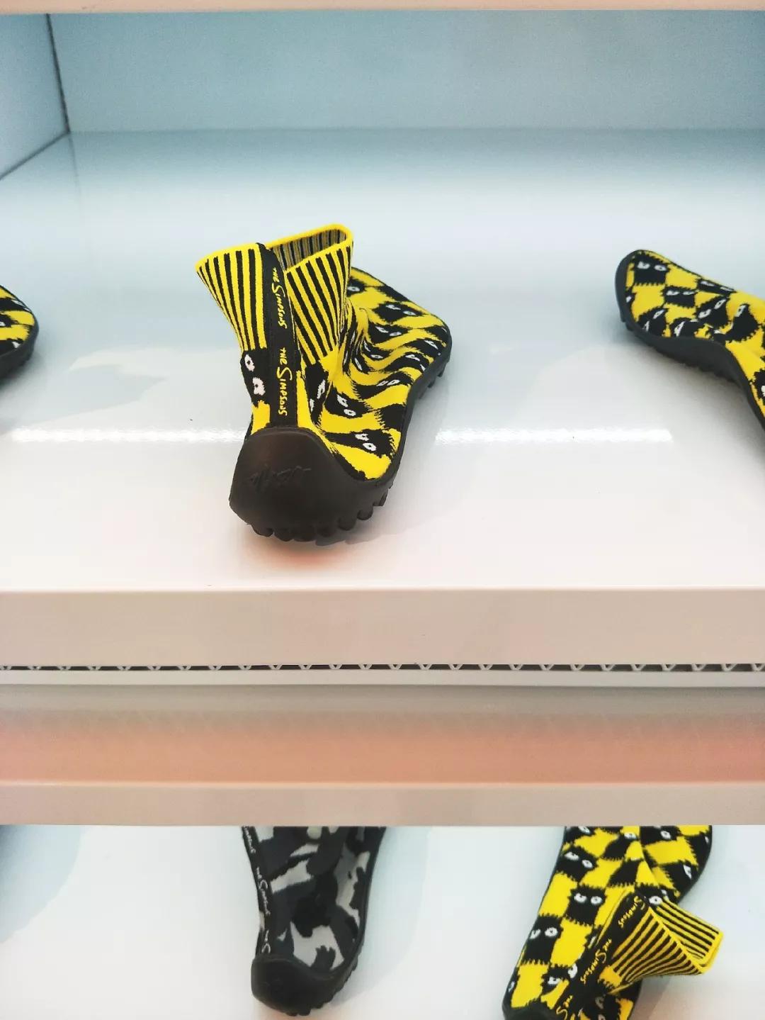 慈星带来的袜子鞋,让人穿鞋如穿袜。这种袜子鞋,除减震防滑鞋底外均为柔软的高弹力飞织面料,加上弹性的脚口,包裹性好、穿脱快捷、没有磨脚感。据了解,这款袜子鞋依靠慈星研发的飞织技术,电脑编程、自动加工、一体针织成型,智能质造与潮流IP相结合,国内首创鞋类无人智能F2C新零售模式——与自动出售饮料的机器类似,消费者可以选择一只单脚样鞋试穿,如觉得合适便可点击屏幕选择鞋子的款式。扫码付款后,鞋子就会落到取货区域。