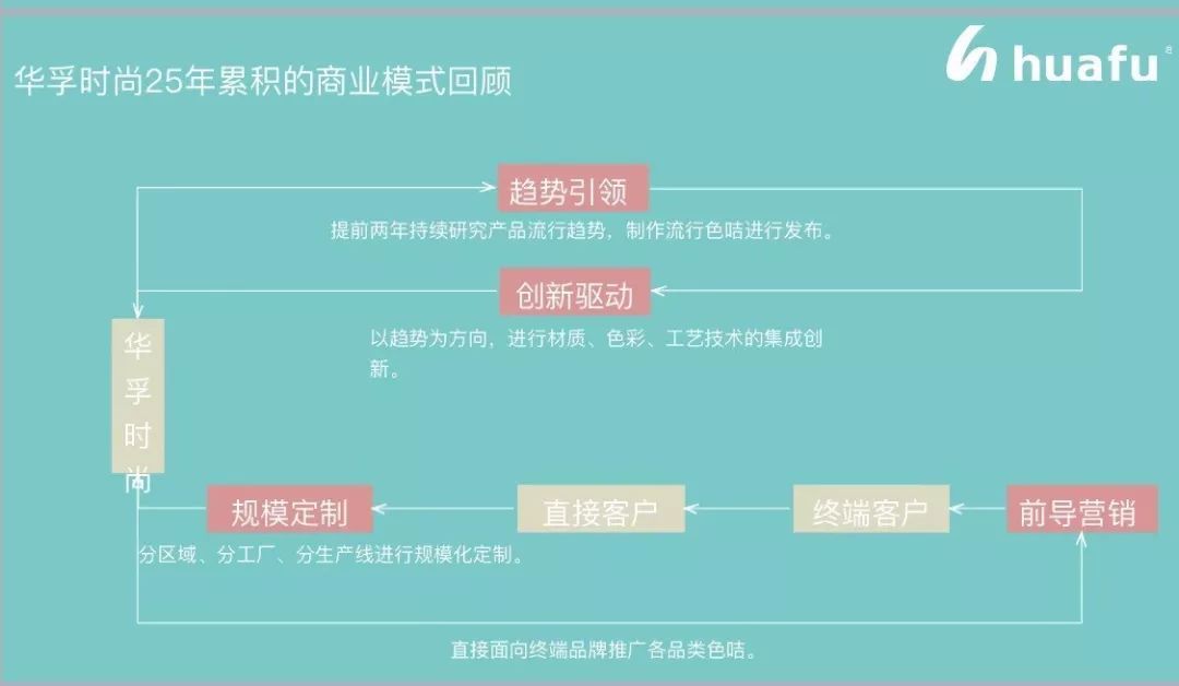 今年4月,华孚时尚股份有限公司在浙江上虞迎来25周年庆典。经过25年的积淀,华孚时尚形成了趋势引领—创新驱动—前导营销—规模定制的商业模式。同时,华孚时尚具备了多个优势能力:流行趋势引领,色彩设计与标准化推广能力;基于流行趋势与客户需求进行的色彩、材料、技术工艺的集成创新;有田头到铺头的视野,了解全球广大终端品牌的产品创新体系与订单供应链体系;多年大规模定制的营运实践与IT能力积累。