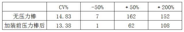 以上数据不难发现在使用前驱加装压力棒条干CV指标、棉结都有明显减少,但-50细节、+50粗节波动还存在,这就是我们下一步要研究解决的问题。