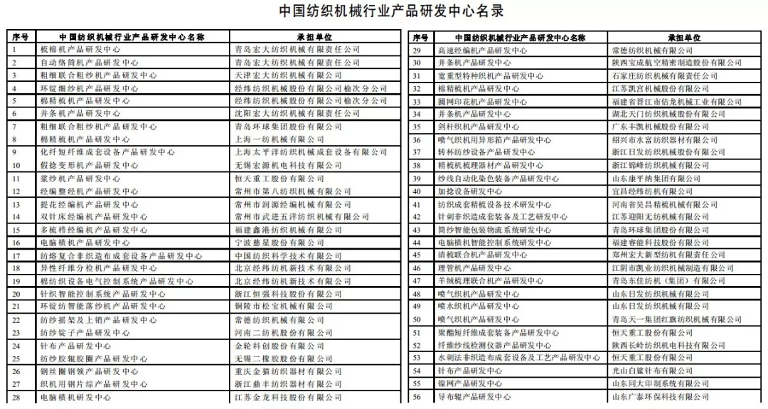 4支新军入列第七批中国纺机行业产品研发中心,56个纺机产品研发中心名录全在这里