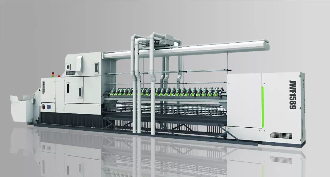 JWF1589新型高速智能细纱机具有三大优势:一是实现了高速运行下的整机稳定性。该机型采用钢领板积极式升降系统,纺纱产量可提高15%~30%,钢领板换向平稳,纱线张力稳定,纺纱成形好,利于高速络筒。二是实现了整节装箱功能。以单节为单位,在装配车间装配调校后独立装箱,零件问题可在公司及时处理,到用户现场安装时整节对接即可,提高了安装效率,可实现快速生产、质量稳定、安装便捷。三是实现了智能化纺纱。该机可实现电子牵伸、电子加捻、电子成型、电子刹车、断电同步、谐波治理及电能检测、精确计数落管、捻度精确控制、纺纺纱工艺专家系统、单锭检测系统与粗纱停喂、智能联网系统,针对不同市场、不同产品,多种纺纱系统组合使用,为提升纱线品质和多品种智能化纺纱提供了坚实的基础。