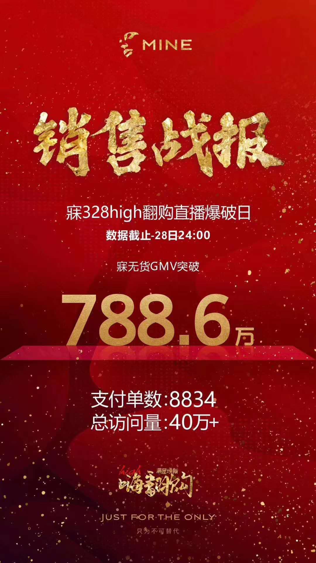 【亿邦动力讯】3月29日消息,梦洁家纺旗下品牌寐在328high翻购狂欢日GMV突破788.6万,支付单数8834单,总访问量40万+。