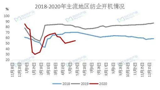 2020年伊始,绝大多数纺织人或许都在庆幸深受贸易摩擦之扰、行情持续下行的2019年终于过去,新的一年日子终于有盼头了。一场突如其来的疫情给了所有人当头一棒。疫情管控使得全国经济陷入停滞,从纺织行业开工率的统计图中可以看出,2月初开工率仅30%,受疫情管控交通封锁等限制,经历了漫长的恢复期,到目前为止仍然没有恢复到19年的同期水平。恢复初期,由于工人无法到岗、上下游链接受阻等影响,很多企业手上订单无法按时交付,老板们都憋足了劲想大干一场。