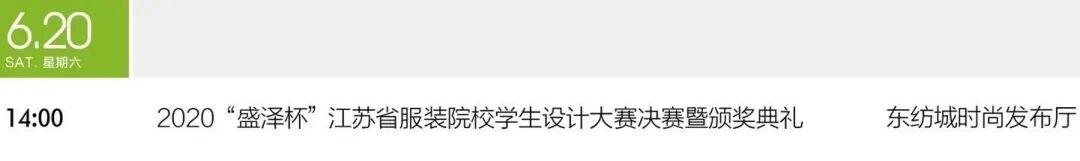 2020盛泽时尚周期间,举行“中华杯·时尚盛泽”丝绸时尚艺术设计大赛启动仪式、第二届中国时尚设计大赛决赛暨颁奖典礼、长三角时尚产业联盟丝绸时尚发展高峰论坛、中国服装协会产业发展委员会委员扩大会议暨全国服装行业协(商)会负责人联席会议、中国大学生女装设计大赛启动仪式等重量级活动和多场时尚秀演。