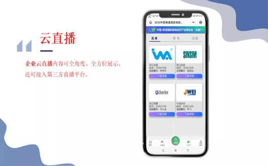 此次“云展会”设置VR虚拟展区,全天候网上推介、供采对接、在线洽谈;设立可即时沟通,互动交流的参展商专属直播间;不仅实现展商足不出户谈生意,更是线上洽谈、线办展、直播带货等新模式新业态,可谓“创新+创意”意味十足!