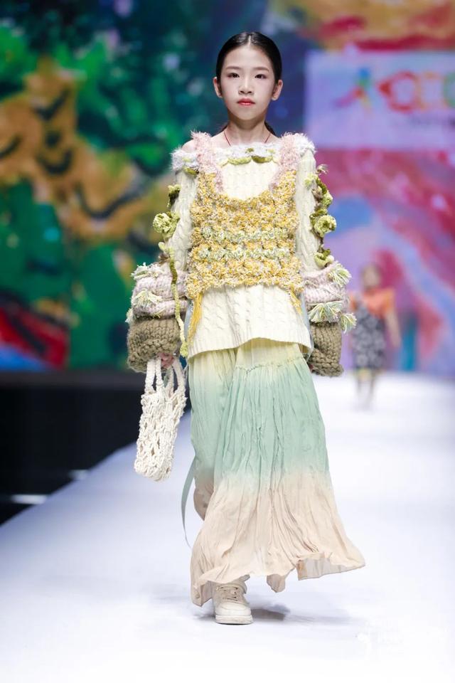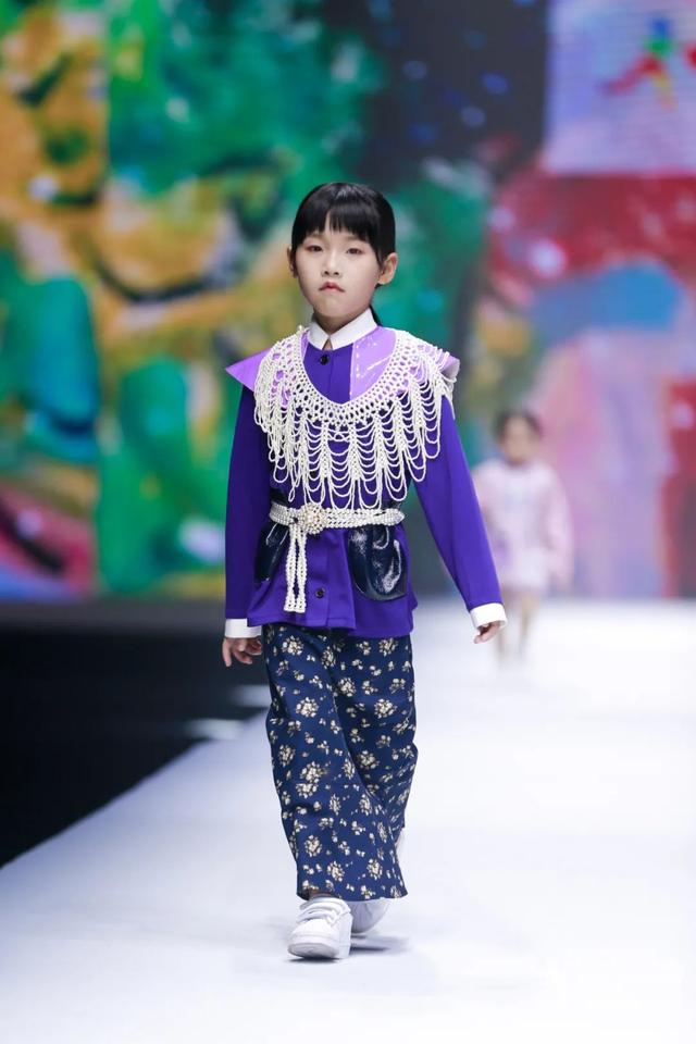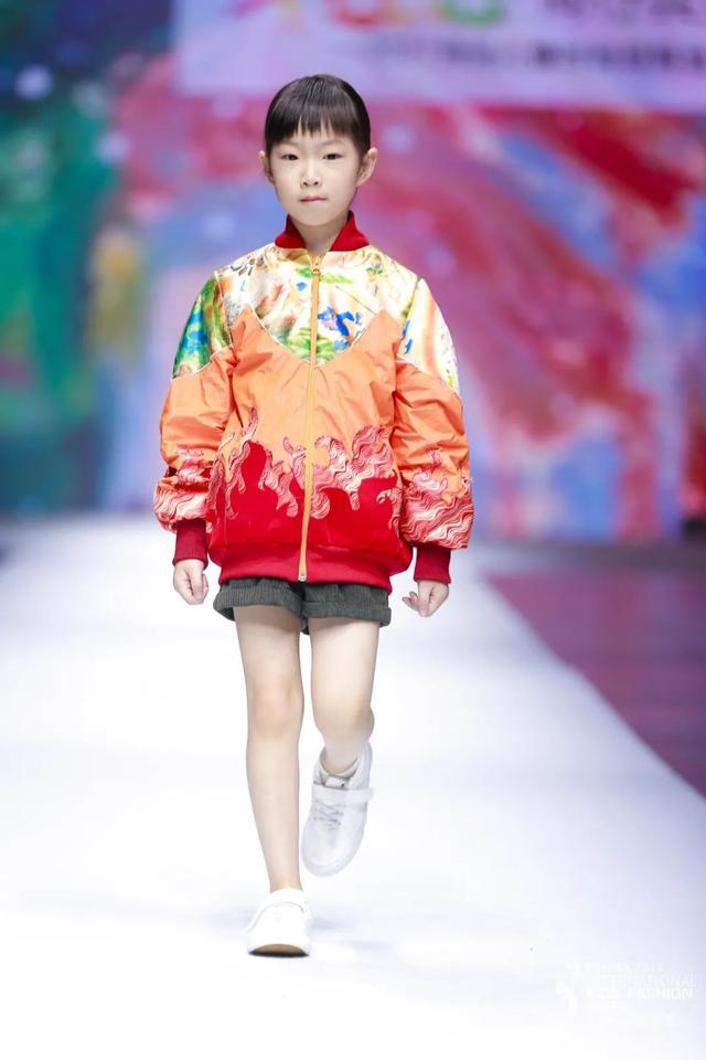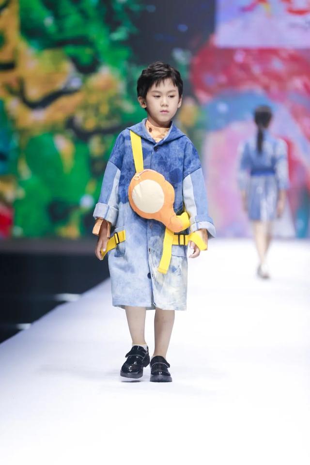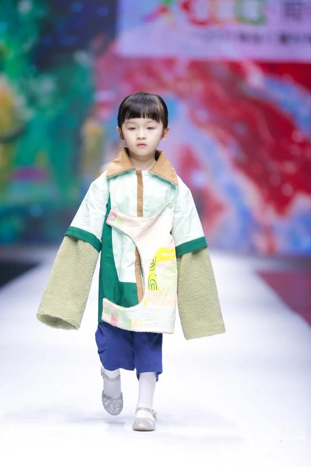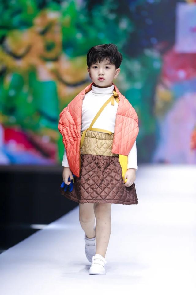 系列由陈闻携手东华大学师生共同奉献,尝试将各类面料元素混搭,突出服装的装饰感,以丰富的图案,斑斓的色彩,增加童装
