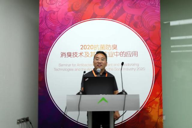 上海洁宜康化工科技有限公司总经理马正升博士,主讲了抗菌抗病毒消臭功能助剂及科技防蚊纱线的研制与应用。