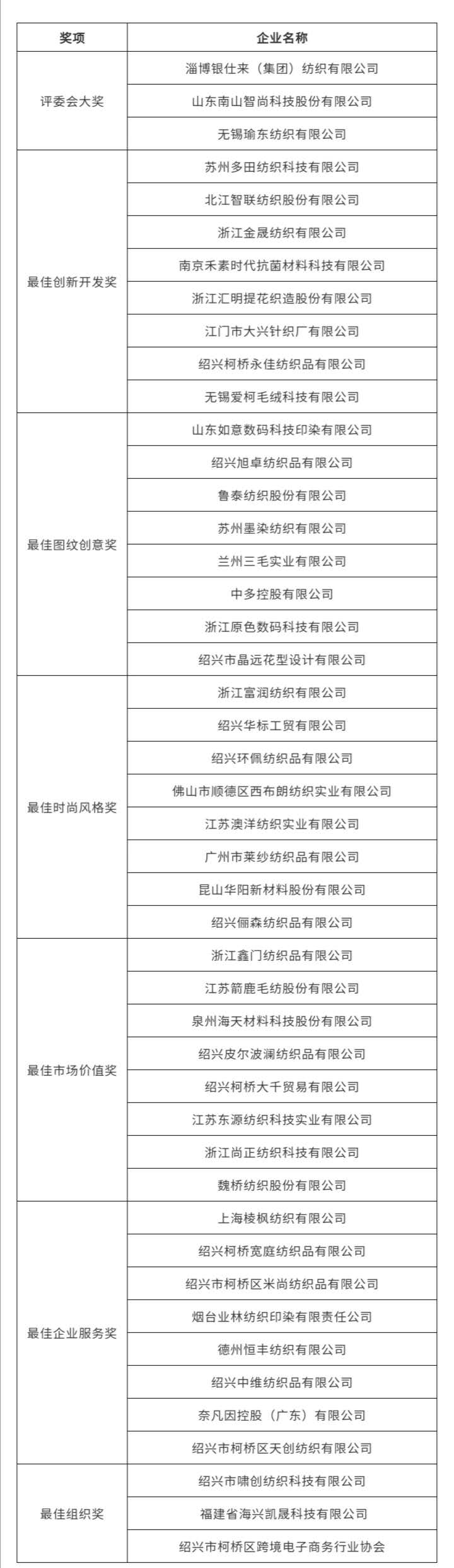 长发国际·2020中国面料之星获奖名单
