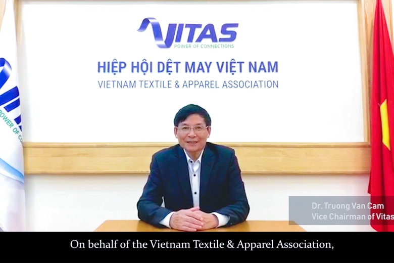 越南纺织服装协会副主席Truong Van Cam从境外同步线上致辞。他表示,2020年的疫情严重影响了全球经济,给越南和中国的纺织工业以及世界造成了巨大的冲击。未来,世界经济发展将面临许多不可预测的变化。希望中越两国协会和两国企业将继续密切合作,相互支持,共同发展。他还指出,目前,中国和越南是世界领先的服装出口国。这次云商展将帮助两国企业保持安全和具有成本效益的连接,而且非常有效。对于每个成功的连接,将来越南将有更多的订单要出口,这也将为工人创造就业机会。