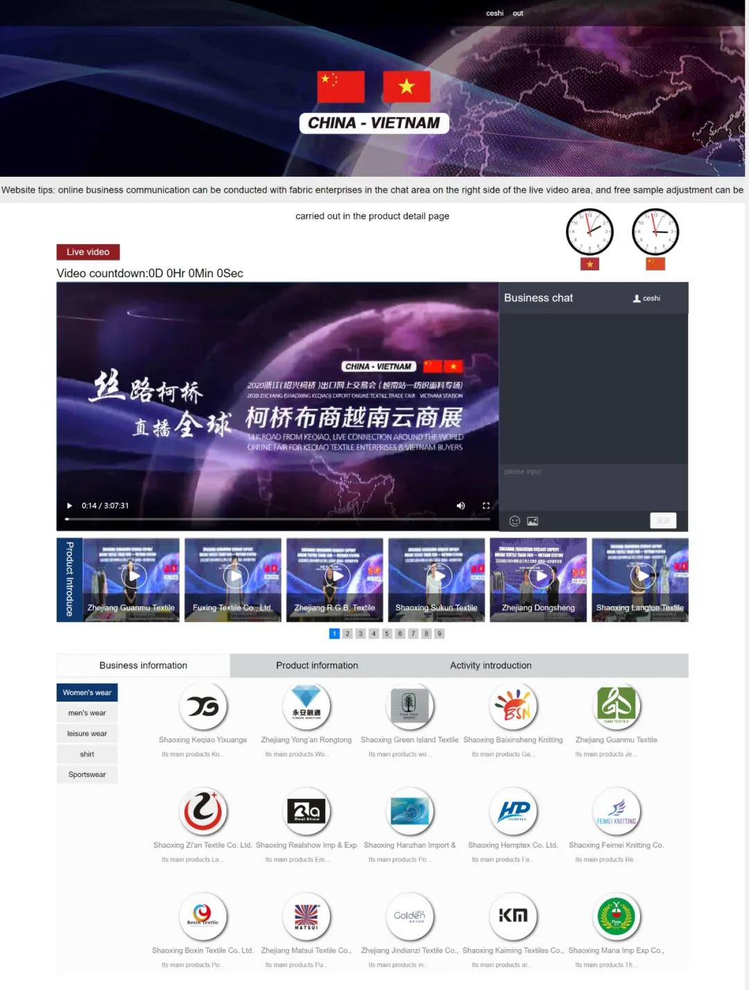 越南国家纺织服装集团Vinatex、越南服装集团VIEC、越南服装进出口公司(Tong Cong TY CO PHAN MAY VIETNAM)、AV GarmentCo.,Ltd、Star Fashion Co.,Ltd、VinaKorea Co.,Ltd、COMO Co.,Ltd、PhoHien Garment JSC、May Hai JSC 、TuanDat JSC、An Hung JSC等百余家越南采购商近300位企业代表在线观看了直播。