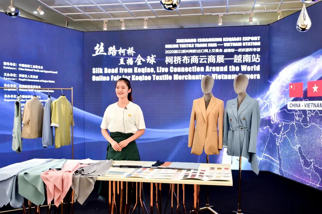 10月12日,“丝路柯桥·直播全球”柯桥布商越南云商展—2020浙江(绍兴柯桥)出口网上交易会(越南站—纺织面料专场)正式线上启幕。为在疫情期间保持好良好的合作态势,同时也为后疫情时代消费和经贸恢复做好准备,此次云商展通过大数据、互联网和VR技术,联动国内线上直播间与越南相关直播平台合力造势,并提供境外相匹配的线下支持,力促中越纺织业实现“云牵手”。