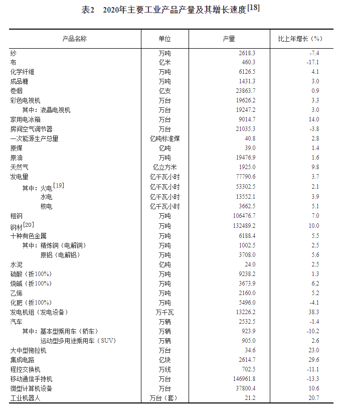 [18]2019年部分产品产量数据进行了核实调整,2020年产量增速按可比口径计算。