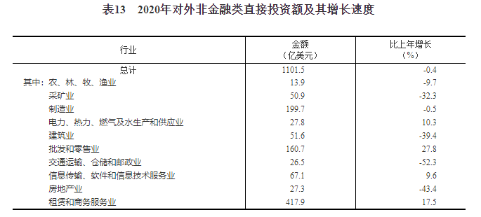全年对外非金融类直接投资额7598亿元,比上年下降0.4%,折1102亿美元,下降0.4%。其中,对“一带一路”沿线国家非金融类直接投资额178亿美元,增长18.3%。