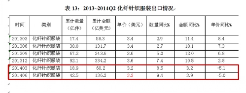 表13:2013~2014Q2化纤针织服装出口情况