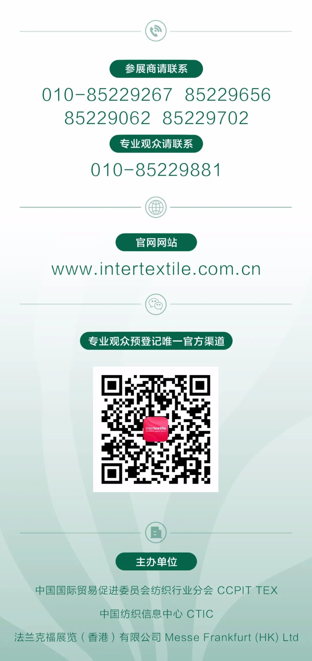同时,全新升级的【intertextile面料展线上展平台】作为线下实体展会的延伸,用数字科技助力行业间高效对接,实现线上线下双向联动,让更多互动和碰撞协同落地。