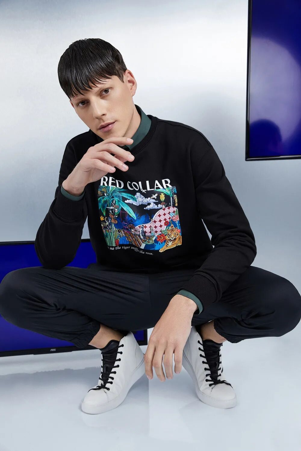 在色彩方面,红领不再是单纯的黑、灰色。2021春夏系列以经典蓝色为主,整体配色更偏向炫彩、多元化、科技感、未来感,分为 “未来极客”、“持续物语”、“粉墨登场”、“交互空间”等色彩系列。整体设计以零压、科技、舒适、生活为主题概念,在全品类赋予无感、弹力、冰爽等全新工艺,主打“弹性”,突出服装的功能性和舒适性,聚焦真实体感与穿着享受,彰显让时尚回归生活,用生活解构时尚的态度。
