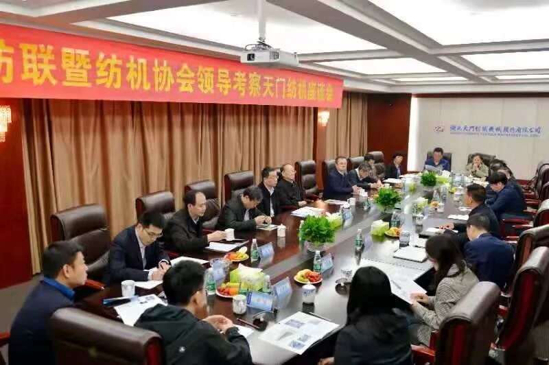 4月14日,中国纺织工业联合会党委书记兼秘书长高勇,在中国纺织机械协会会长顾平的陪同下,带领纺机协会相关部门负责人到天门纺机调研。天门市委副书记、市长杨兴铭,副市长高文博以及市经信局局长张文辉陪同参与调研活动。