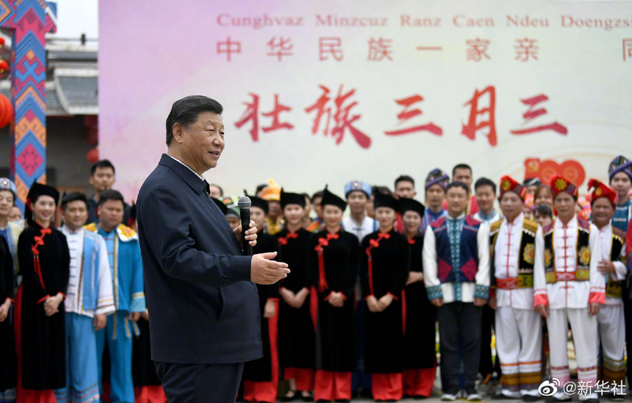 27日上午,正在广西南宁考察调研的习近平总书记,来到广西民族博物馆,参观壮族文化展,观看三月三“歌圩节”壮族对歌等民族文化活动展示,了解促进民族团结进步和民族文化保护传承等情况。(文字记者:张晓松、朱基钗;摄影记者:鞠鹏、谢环驰、申宏)