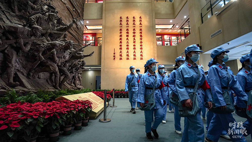 △红军长征湘江战役纪念馆内,参加“红色教育”的学生们。(总台国广记者李晋拍摄)