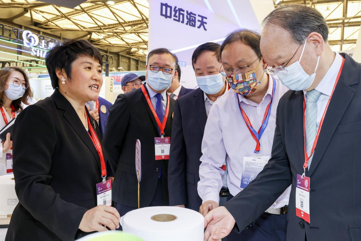 记者在现场了解到,展会开幕当天上午,中国纺织工业联合会党委书记高勇、会长孙瑞哲、原副会长许坤元、党委副书记陈伟康、副会长徐迎新,中国国际贸易促进委员会纺织行业分会常务副会长梁鹏程、中国产业用纺织品行业协会副会长李桂梅等相关领导一行,到北京时尚控股所在的E2馆C52展位参观指导,并充分肯定了北京时尚控股在纺织科技创新中的发展成就。北京时尚控股党委副书记、总经理顾伟达,北京时尚控股党委常委、副总经理赵宏晔陪同参观。