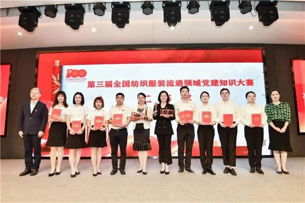 今年是中国共产党成立100周年。百年前,中国共产党从嘉兴南湖红船上扬帆起航。带领中国人民越过急流险滩,穿过惊涛骇浪,一步步实现国家独立、民族解放、人民幸福。在中国共产党的带领下,中华民族迎来了从站起来、富起来到强起来的伟大飞跃。百年来,中国共产党矢志不渝的拼搏精神始终激励着每一位中国人奋勇前行,引领着中国人再创百年辉煌。在各级党委政府的大力引导支持下,全国纺织服装专业市场深入贯彻习近平新时代中国特色社会主义思想和党的十九大精神,通过完善体系、夯实基础、丰富载体、打造特色等多种途径,切实加强和改进基层党组织建设,全面科学地提升党建工作水平,以党建促服务,以服务促发展,推动纺织强国建设。台上,来自全国纺织服装专业市场的党员先锋代表凭借丰富的党建知识储备和扎实的理论功底,通过以赛促学、以学促用,提高了广大党员干部理论素养和党建知识水平,通过多种形式探索建立“不忘初心、牢记使命”主题教育长效机制,进一步增强“四个意识”、坚定“四个自信”、做到“两个维护”,展现出了新时代纺织服装流通领域党员先锋精神。