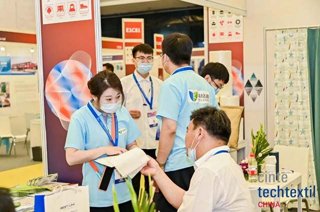 展会期间,展馆中、通道里、展位间无不熙熙攘攘,一位位专业买家认真浏览、挑选、感受着来自产业用纺织品及非织造布领域的前沿之风。近些年,随着产业在各个领域大显身手,也越发吸引了更多细分领域的下游专业买家,为夏季的沪上增添了炎炎商机。